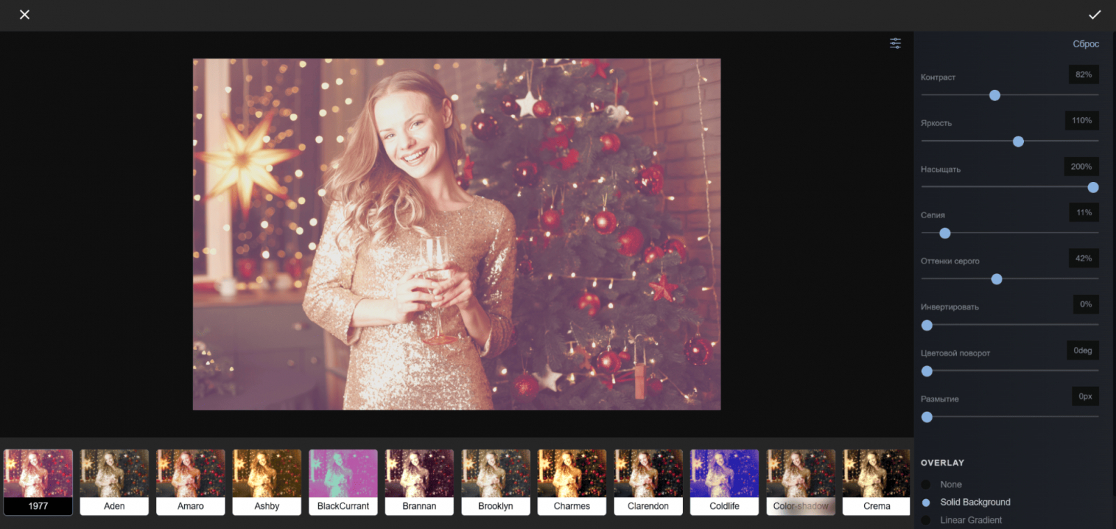 - цветовые пресеты — «Кодахром», «Брауни», «Винтаж».