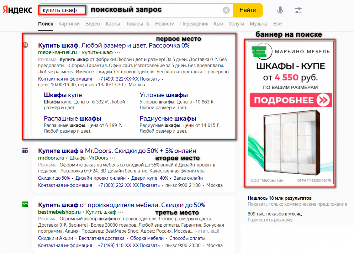 Контекстная — такая реклама ставит своей задачей совершение пользователем определенного действия, ориентирована на теплую или горячую аудитории, заинтересованную в товаре или услуге. Она показывается пользователям, если они вводят соответствующий запрос в поисковике или посещают тематические веб-сайты.