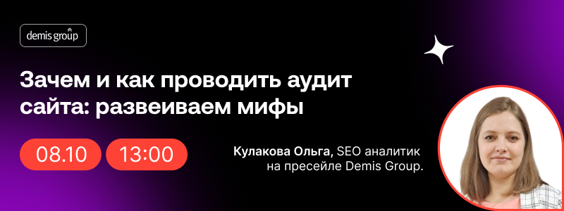 Что же такое SEO-аудит, из каких этапов он состоит и почему важно начинать SEO-продвижение именно с аудита? Именно об этом мы и поговорим на нашем вебинаре 8 октября в 13:00 по Мск.