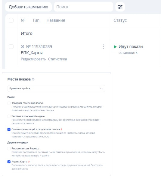 Лучше запускать рекламу на Яндекс Картах отдельно, а не объединять ее с кампаниями на Поиске или в РСЯ. Совмещение разных площадок затрудняет анализ результатов и может снизить эффективность показов, потому что данные по кликам и конверсии смешиваются. Отдельная кампания позволяет точно отслеживать KPI и оптимизировать бюджеты, чтобы каждая потраченная копейка приносила максимальный результат.