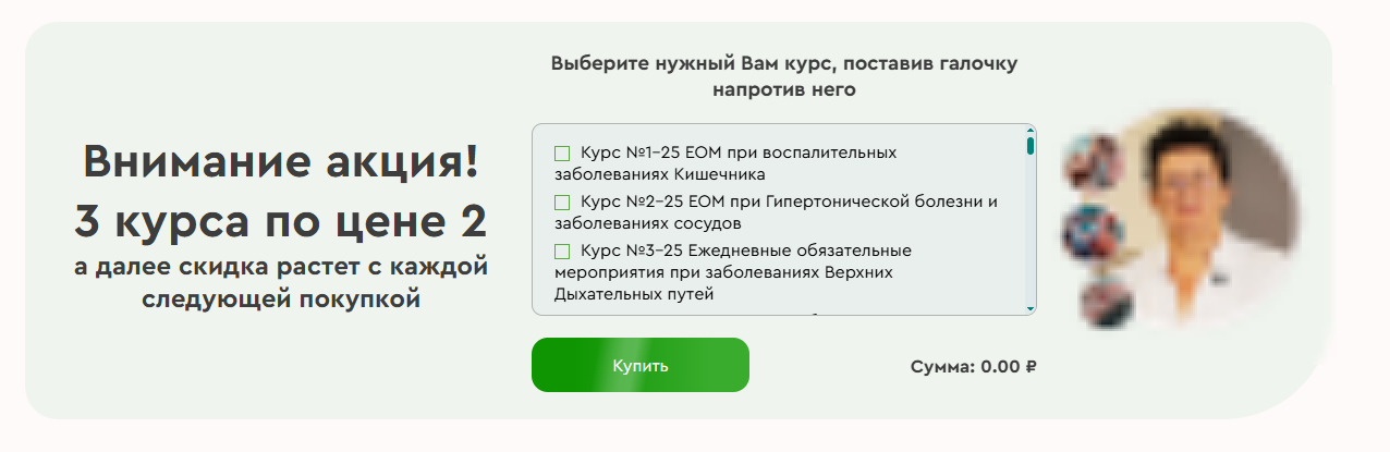 В учебно-оздоровительном центре (NDA) есть собственная онлайн-школа: десятки видеокурсов по здоровью и восстановлению. Но при разработке сайта не предусмотрели возможность купить несколько курсов сразу — а значит, маркетинговые акции вроде «2+1» были невозможны. Это напрямую ограничивало продажи.
