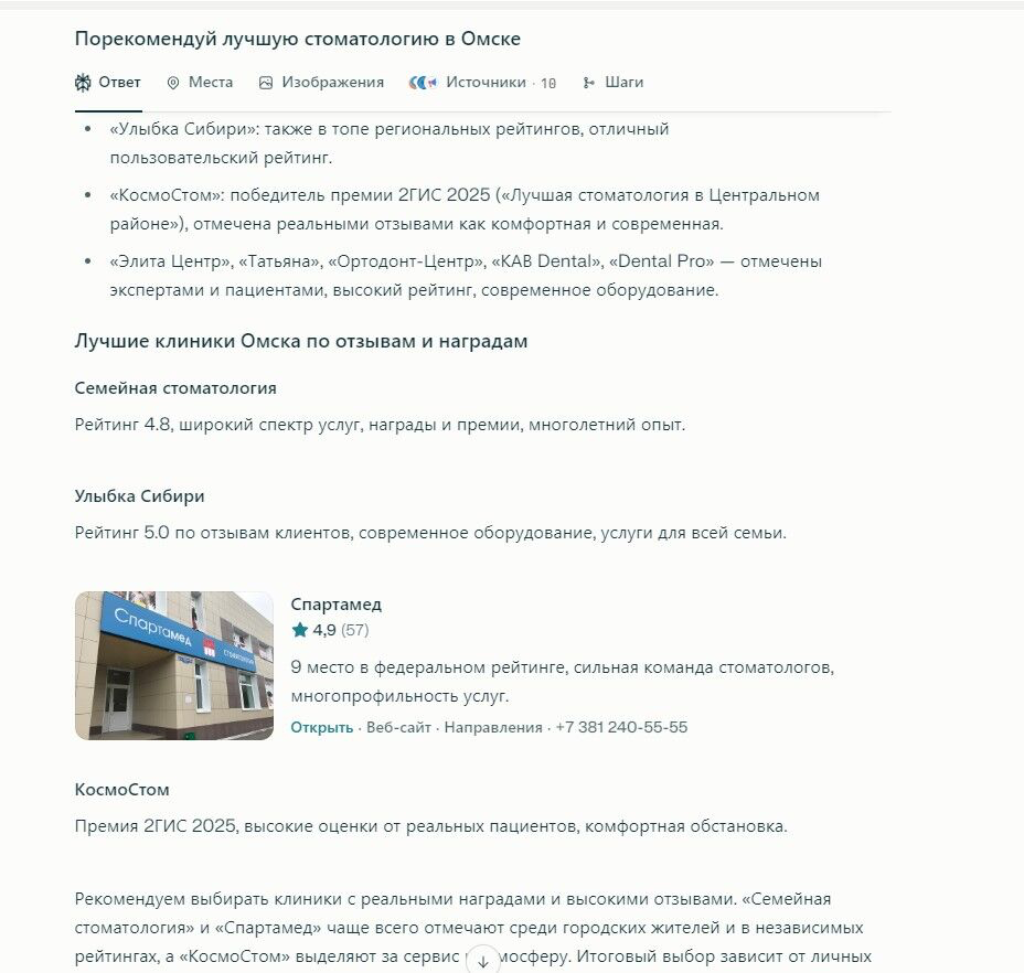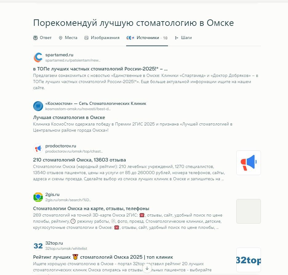 Посмотрев источники того же Perplexity, легко заметить: ИИ не придумывает ответ с нуля, а опирается на публично доступные сигналы — репутацию в сети.
