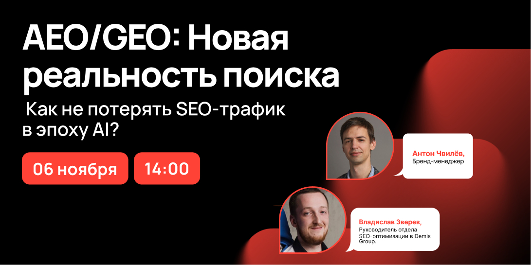 Demis Group подготовила серию вебинаров и конференций, которые помогут вам быть на шаг впереди в SEO, рекламе, репутации и технической поддержке сайтов. Узнайте, как адаптироваться к новым алгоритмам Яндекса, эффективно работать с AI-выдачей, привлекать клиентов в юридической нише, управлять кризисными коммуникациями, исправлять «невидимые» ошибки сайта, прокачивать репутацию онлайн и запускать прибыльные рекламные кампании.