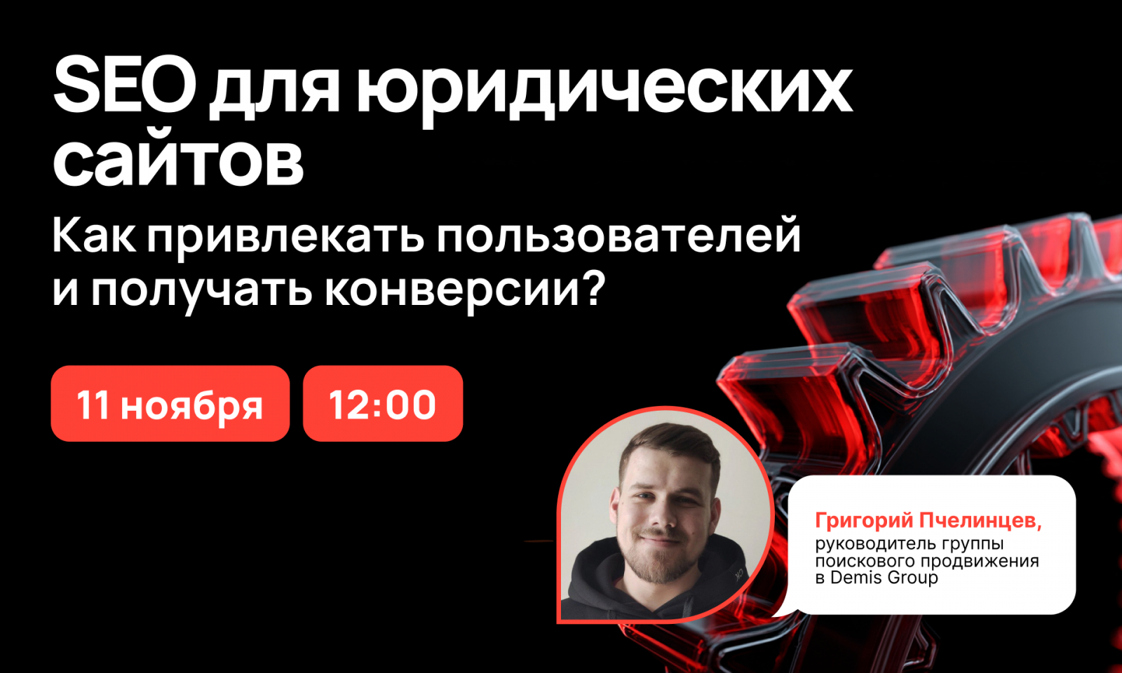 На вебинаре разберём, как работает SEO для юридических сайтов, что влияет на доверие пользователей и какие приёмы реально приносят заявки.