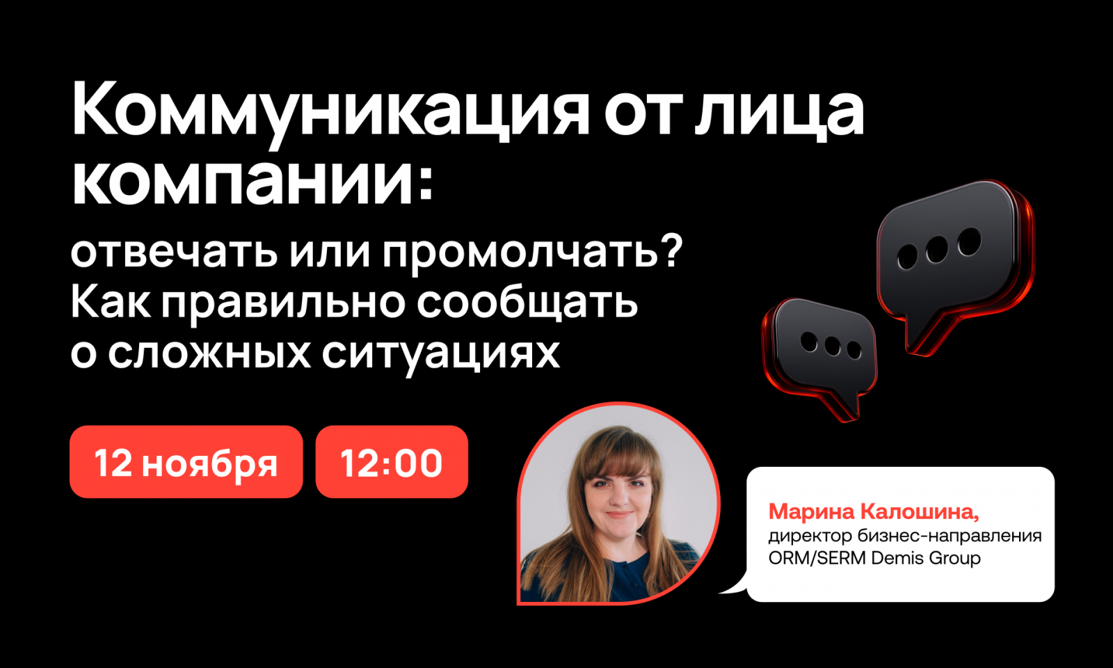 🎙 Спикер: Марина Калошина, директор департамента управления репутацией Demis Group.