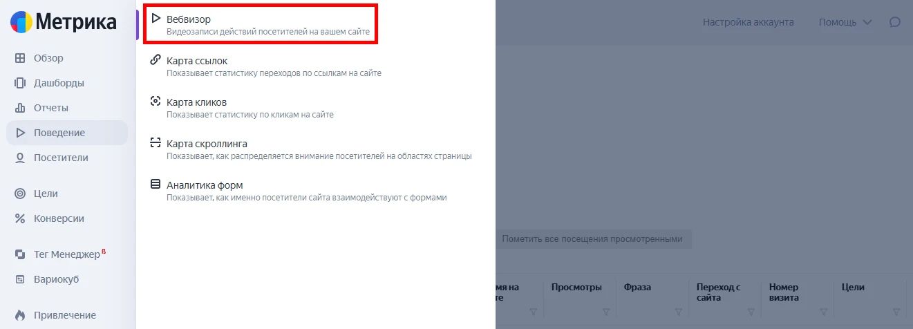 Ключевое преимущество Метрики — инструмент «Вебвизор». По сути, это возможность «посмотреть на сайт глазами пользователя». Сервис записывает реальные сессии: движения курсора, прокрутку страниц, клики и переходы. Например, можно увидеть, как посетитель теряется в навигации, игнорирует важный блок или не доходит до кнопки действия. Такой уровень детализации даёт конкретные ответы — что именно мешает конверсии и где требуется доработка.