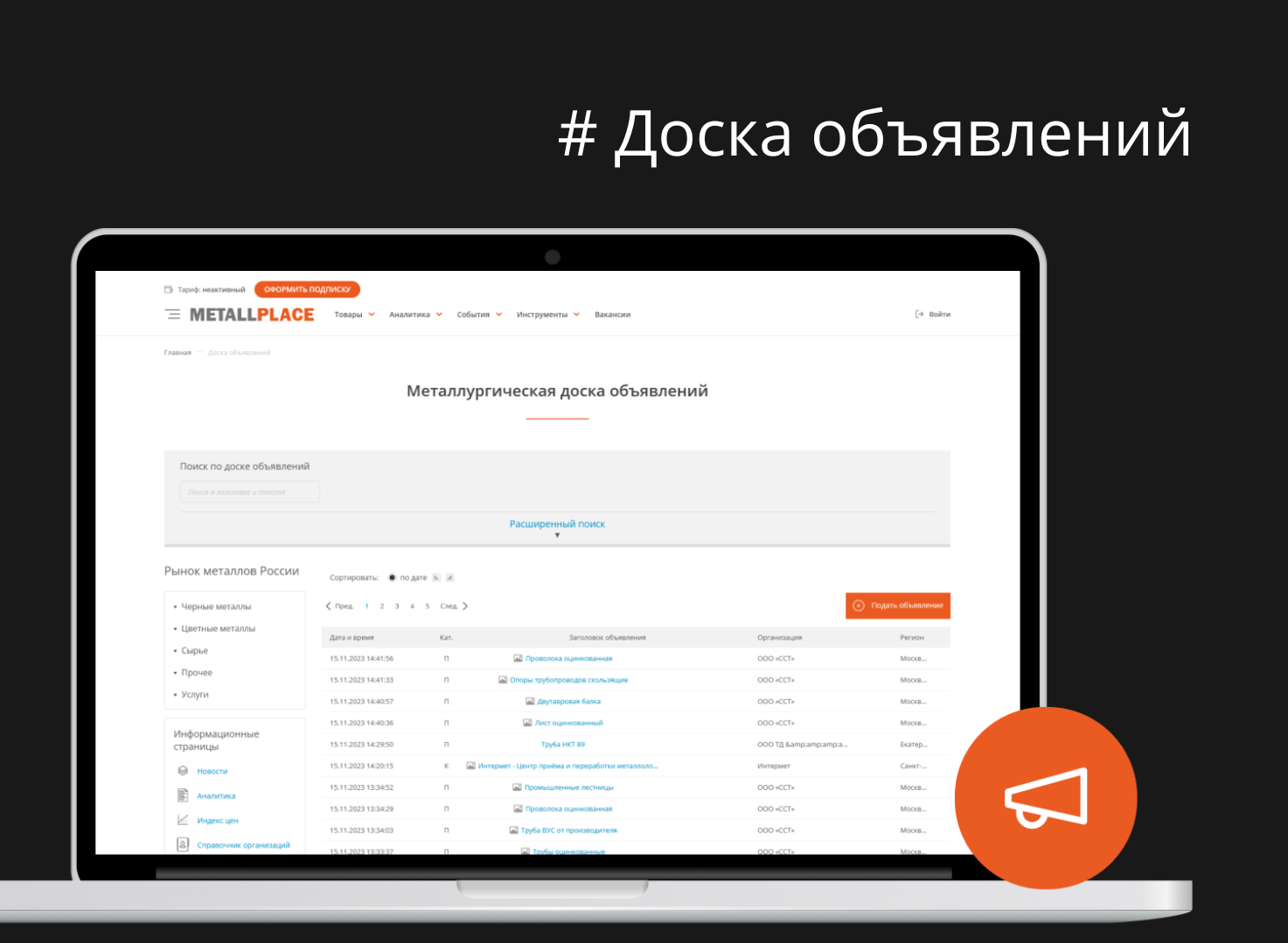 Одновременно с аналитическим разделом был запущена «Доска объявлений», где поставщик, покупатель или сам завод может разместить объявление о продаже, покупке или обмене товара/услуги.