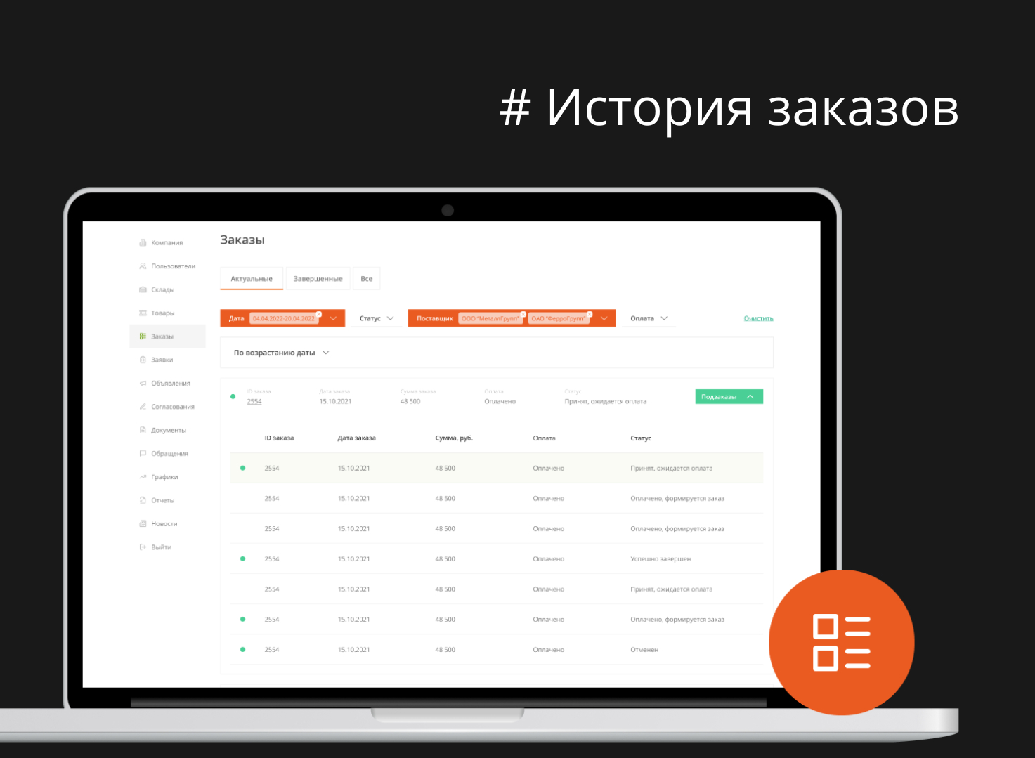 История заказов
