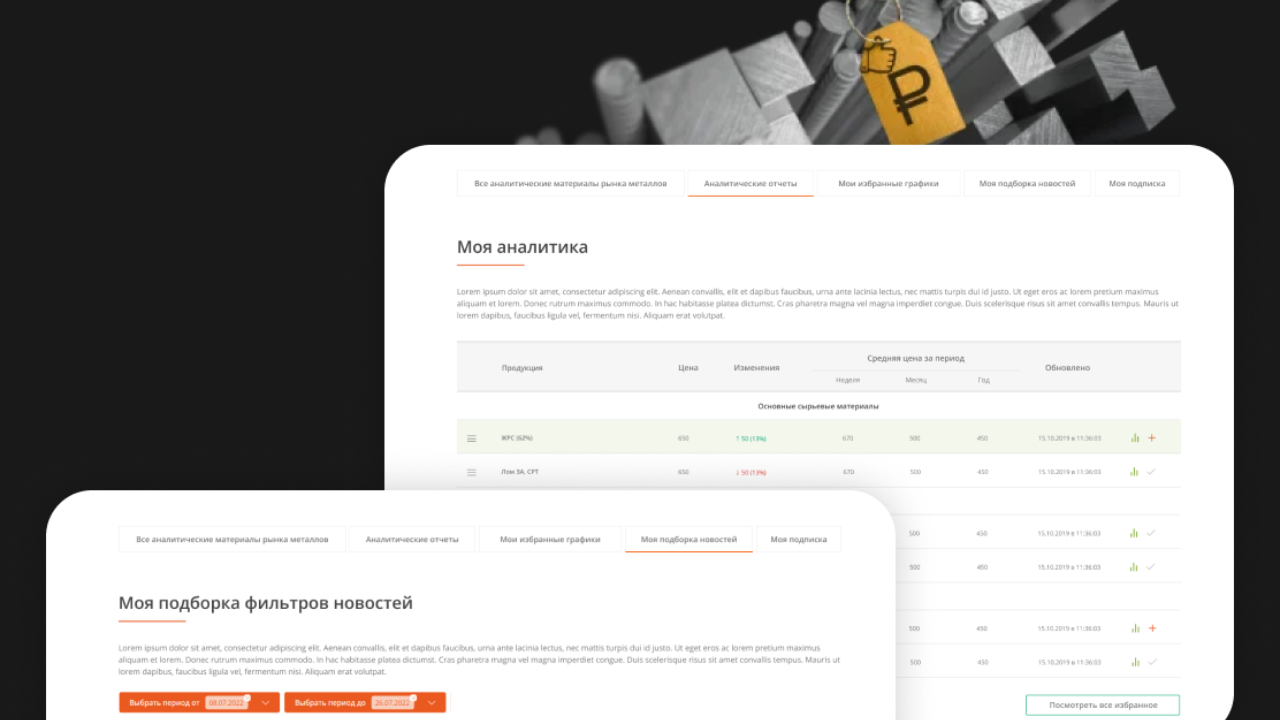 Перед нами стояла задача доработать ресурс, который позволил бы участникам металлургического рынка всегда быть в курсе актуальных новостей и оперативно следить за динамикой цен на мировом рынке. Портал должен был отвечать требованиям современного Интернет-сообщества: иметь User-friendly интерфейс, современный дизайн и удобную компоновку, отображать в личном кабинете персонализированную сводку новостей в зависимости от предпочтений и типа пользователя.