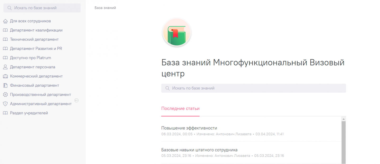 Кроме того, доступ к Базе знаний мы открываем даже стажерам, поэтому вдвойне важно и ответственно, чтобы информация была актуальной. Ведь повторное обучение потребует дополнительное время и ресурсы, а может и вовсе привести к потере специалиста.