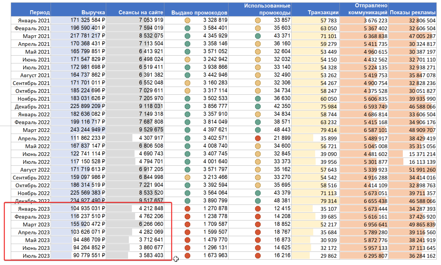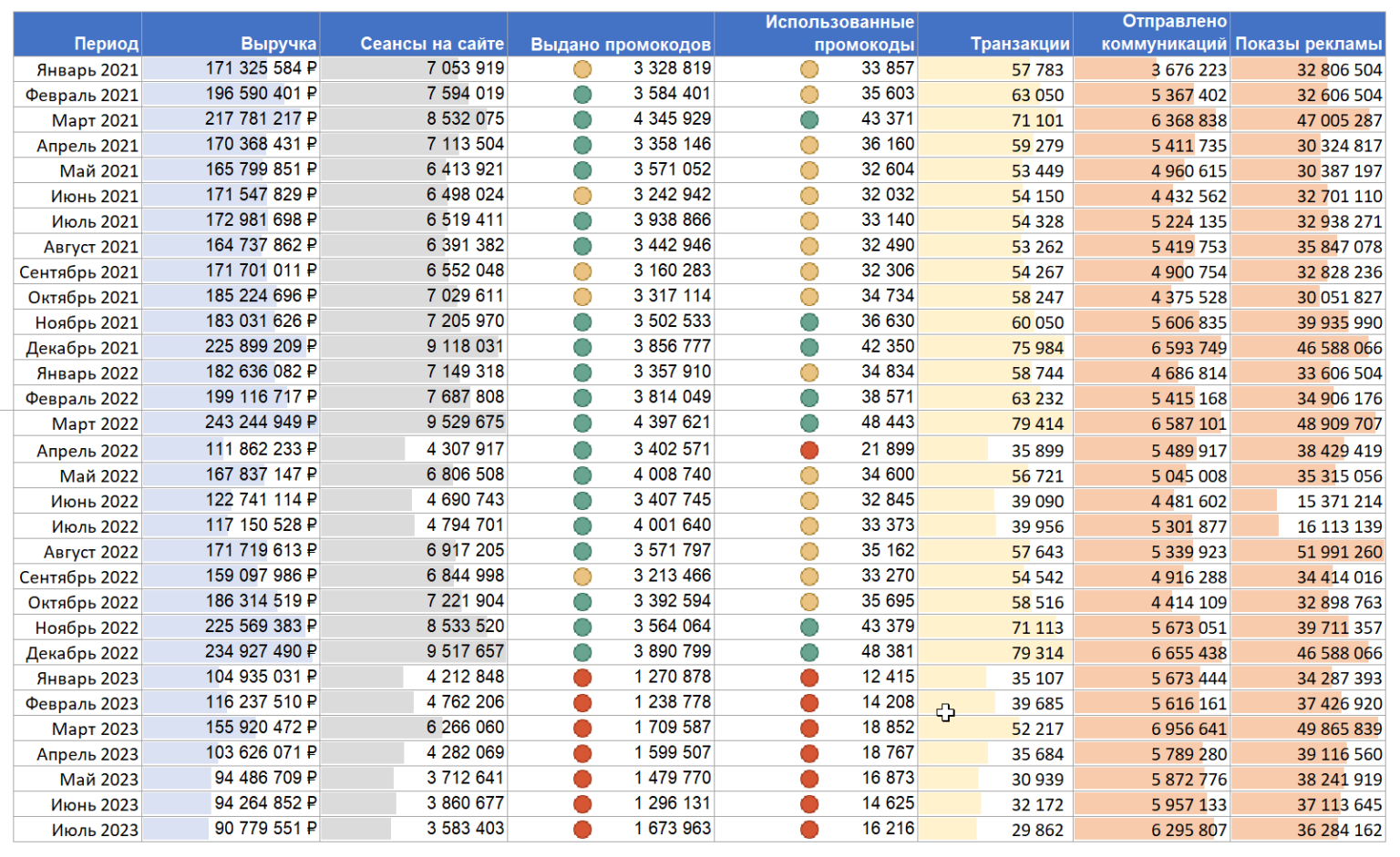 Подготовили датасет на обезличенных клиентских данных из области ретейла, с информацией о продажах за два неполных года и дополнительными метриками: продажи, сессии, показы рекламы, отправленные коммуникации и так далее. Добавили информацию за ещё один предыдущий год — для определения сезонности. И количество покупок — для определения динамики среднего чека и изменения после этого покупательского поведения.
