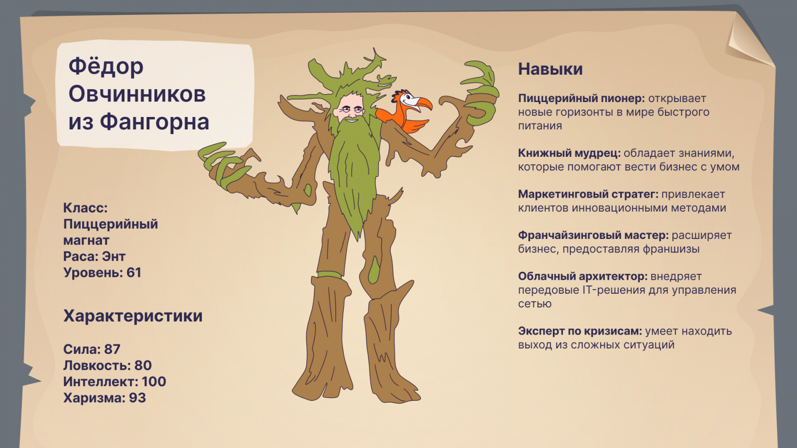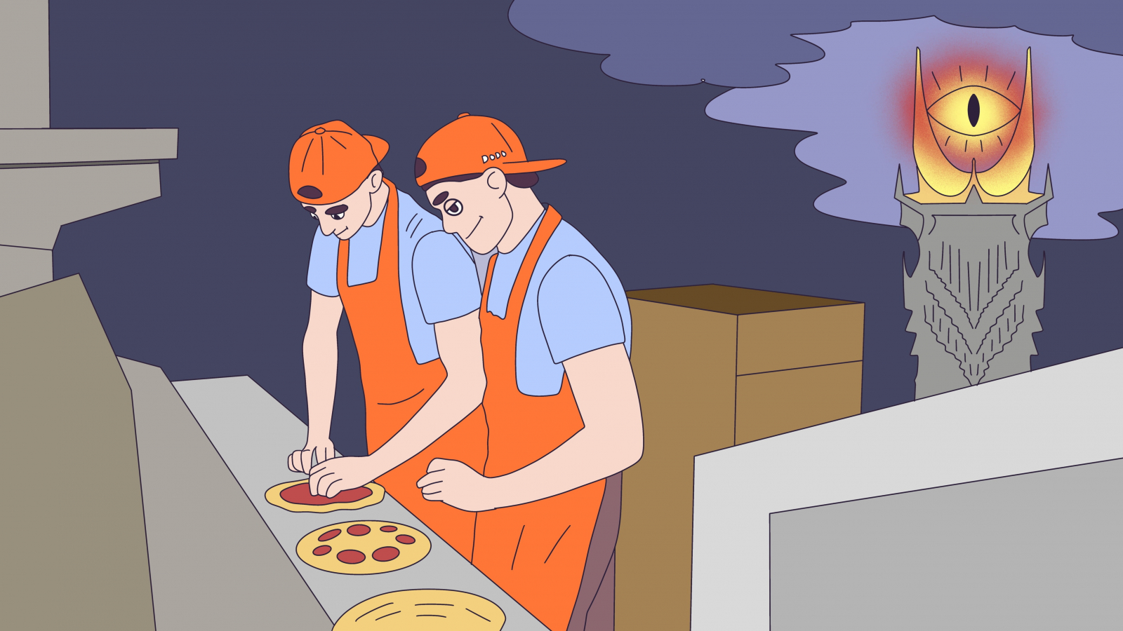 Овчинников не просто организовал быстрый и качественный сервис, но ещё и внедрил в свою компанию новые технологии. Он воспользовался опытом Саурона, который построил «Всевидящее Око», и сделал своё «Око», с помощью которого клиенты могли наблюдать за приготовлением еды во всех пунктах доставки. Это выгодно выделяло его бренд на фоне конкурентов.