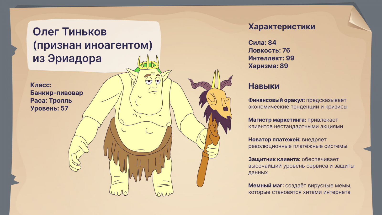 По всему Средиземью о Тинькове (признан иноганентом) рассказывают легенды. Он не боится идти наперекор, ведь бояться ему нечего — он побеждал даже смерть! Его красноречивые и спорные высказывания находили отклик у жителей по всему миру благодаря своей честности и искренности.