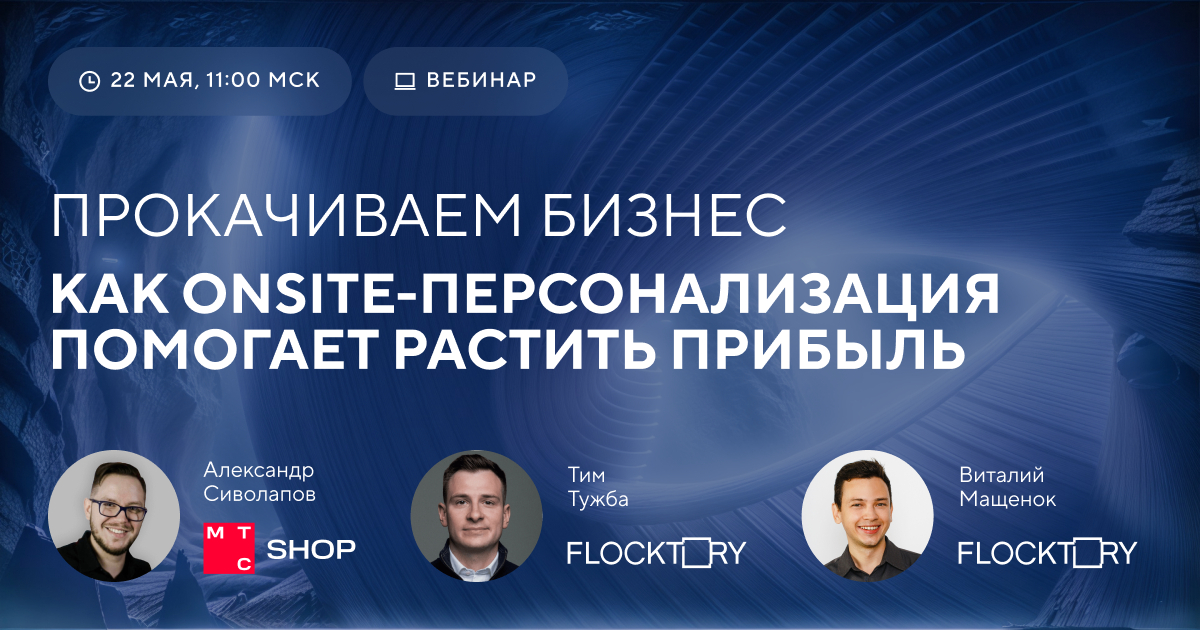 22 мая в 11:00 мы проведем вебинар о том, как с помощью onsite-персонализации кратно увеличить прибыль из онлайна. Эксперты Flocktory вместе с партнерами из команды МТС shop обсудят в диалоге потребности рынка, поделятся опытом и результатами в цифрах.