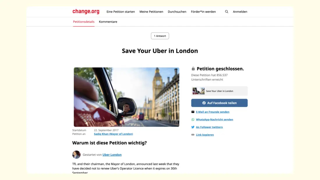 Новый CEO сразу показал себя как отличный антикризисный менеджер. В 2017 году Uber лишили лицензии на работу в Лондоне из-за нарушений — они касались проверки биографических данных водителей, получения ими медсправок и безопасности приложения. В ответ Хосровшахи опубликовал письмо в местной газете, где признал ошибки и принёс публичные извинения. Пиарщики Uber создали петицию на Change.org и попросили отменить решение городских властей, так как 40 тысяч водителей могли потерять работу. Петиция собрала более 800 тысяч подписей за считанные дни, и Uber разрешили снова работать в Лондоне.