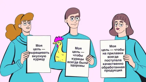 Каждый сотрудник фабрики продумал свои личные цели и обсудил их с коллегами. Например, дезинфектор пообещал вовремя и тщательно обрабатывать производственные площадки, чтобы фабрику больше не штрафовали. Наладчик оборудования обещал устранять неисправности как можно скорее, чтобы производство яиц не стояло на стопе. Все сотрудники зафиксировали свои цели в письменном виде. Цель каждого сотрудника обсуждали: её нельзя было записать, если она не соответствовала глобальной цели компании.