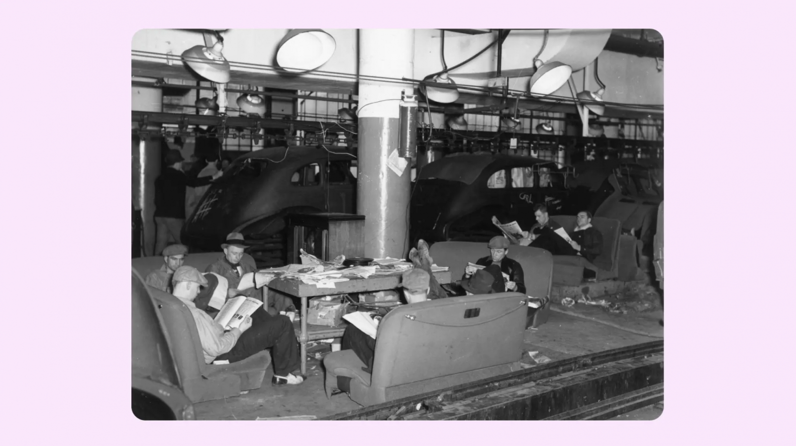 «Дженерал Моторс» на тот момент были самой крупной автомобильной корпорацией в мире, поэтому они могли выдержать забастовку. Руководство махнуло рукой на рабочих и отрубило на заводе электричество и отопление. Мол, раз выделываетесь, то мы тоже будем. Рабочие мёрзли, но с завода не ушли.