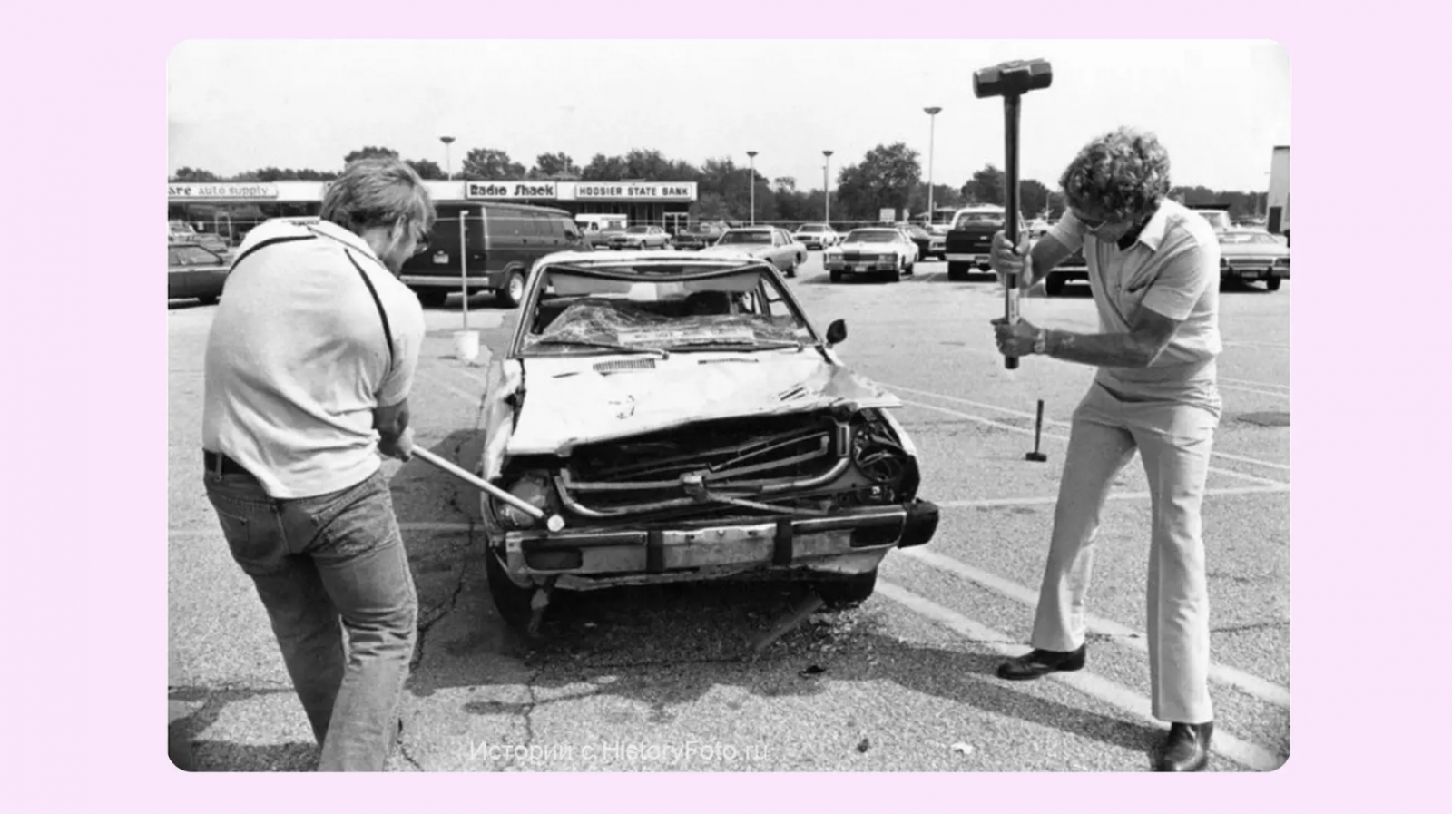 Производители пытались выпросить у UAW разрешение перестроить конвейеры, производство и придумать новые машины. Но UAW отказали и решили поступить хитрее. Они занялись пропагандой, чтобы настроить население против зарубежных конкурентов. Например, покупали японские автомобили, выставляли их на площади и выдавали прохожим кувалду. Да, вы правильно поняли. Чтобы хреначить автомобили.
