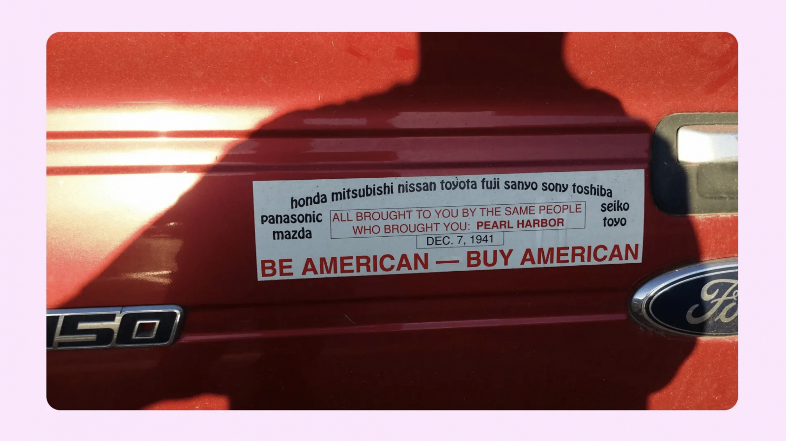 Сокращённым с заводов рабочим говорили, что во всём виноваты японцы. Это они пришли и порушили американскую экономику, а не что работы нет, потому что хоть что-то сделать ради конкуренции на рынке, например, перестроить конвейеры, запрещает UAW.