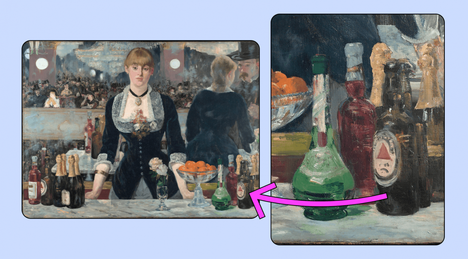 Продакт-плейсмент — это естественная интеграция бренда в сюжет. Злые языки утверждают, что этим промышлял ещё Мане в 1882-м. На картине «Бар в “Фоли-Бержер”» видны две бутылки пива с этикеткой в виде красного треугольника. Это английский светлый эль Bass.