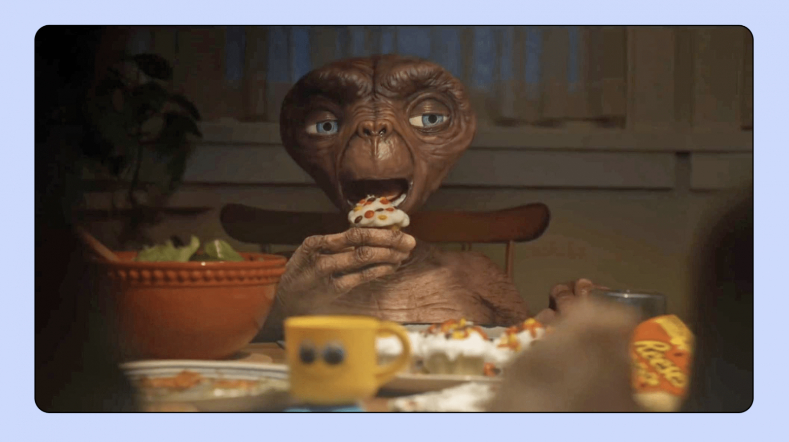 Изначально режиссёр картины Стивен Спилберг хотел, чтобы инопланетянин в кадре ел M&Ms. Но производители посчитали, что уродливый персонаж отпугнёт покупателей.