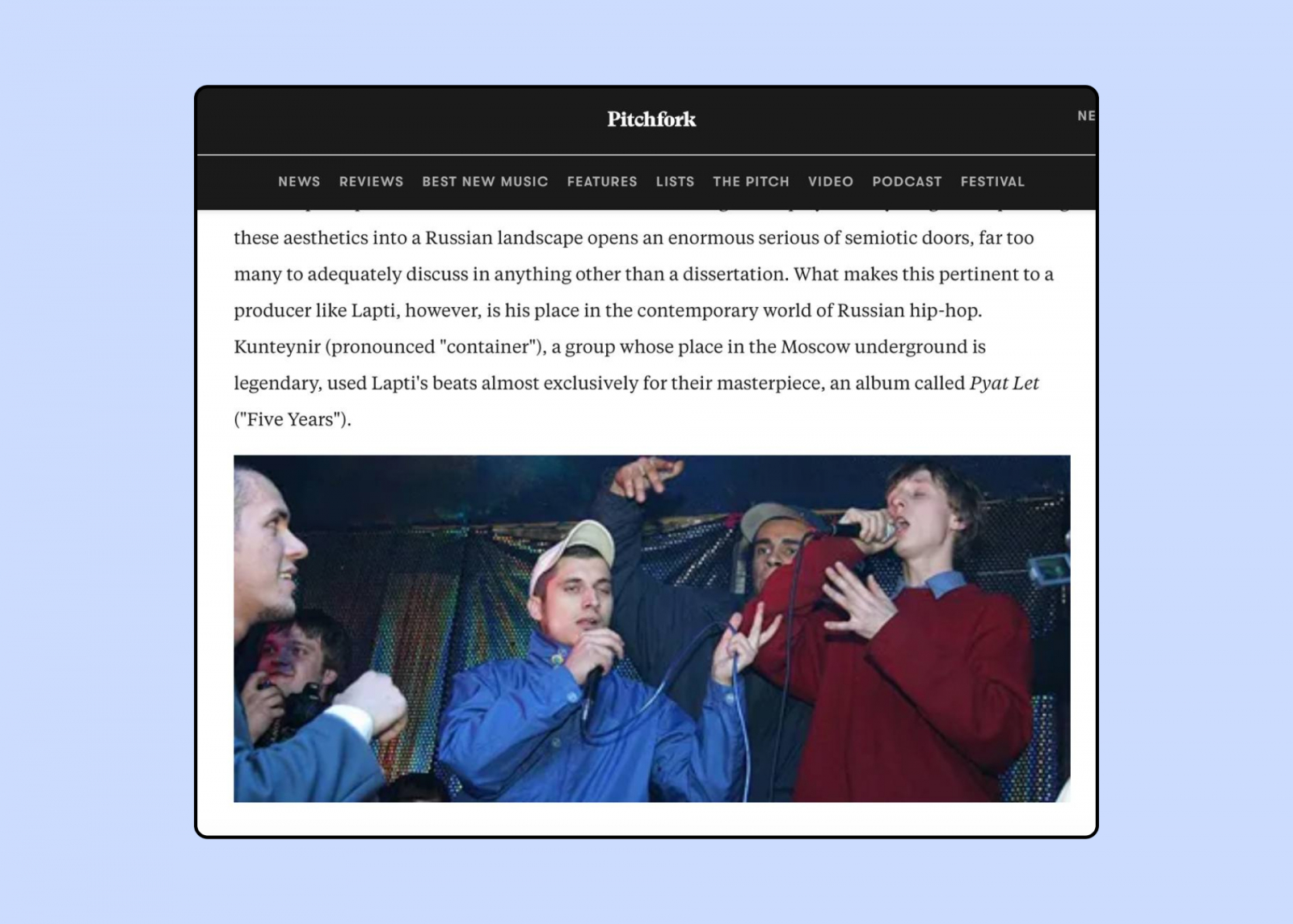 В 24 года Пашу посадили за распространение наркотиков, и группа на время распалась. При этом представление о Технике как о классном рэпере и талантливом битмейкере только укрепилось. О битах Паши написал самый популярный журнал о музыке в мире Pitchfork. Группу Kunteynir в статье назвали легендарной, а альбом «5 лет» — настоящим шедевром.