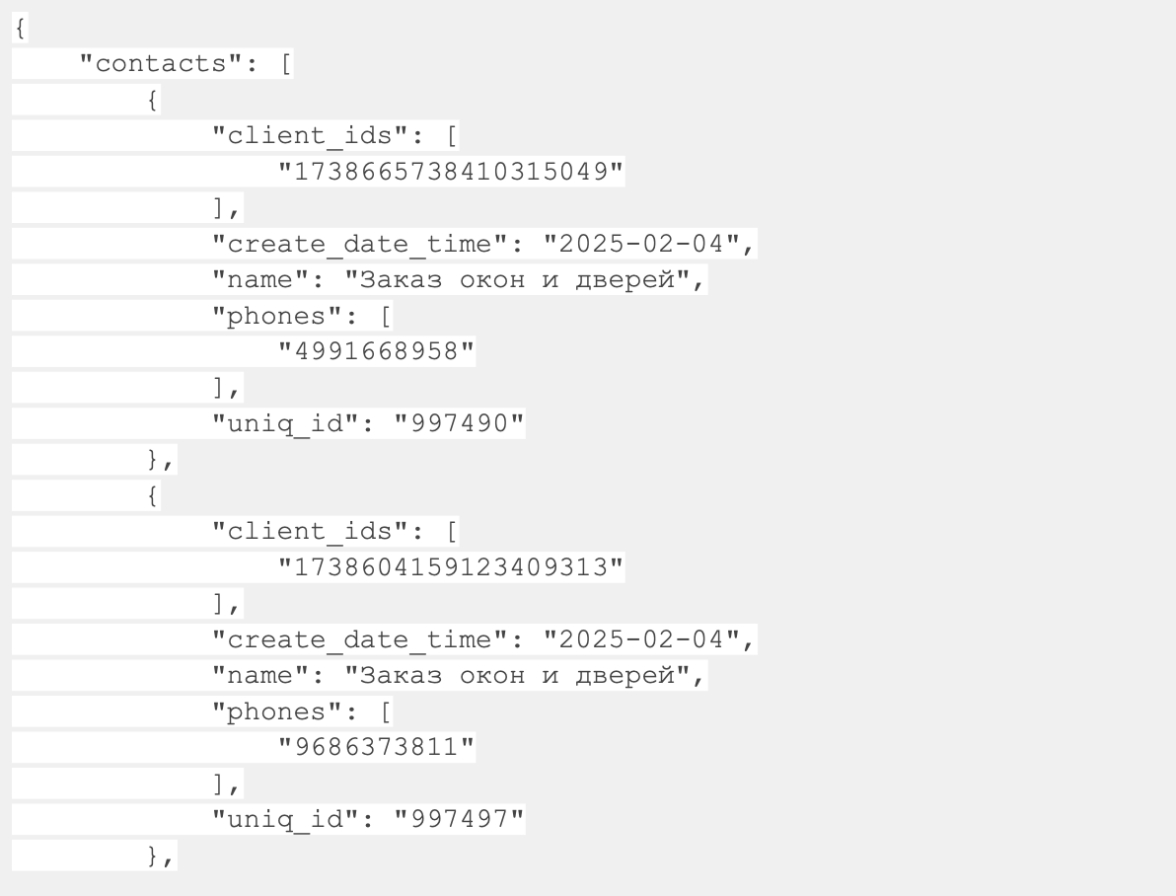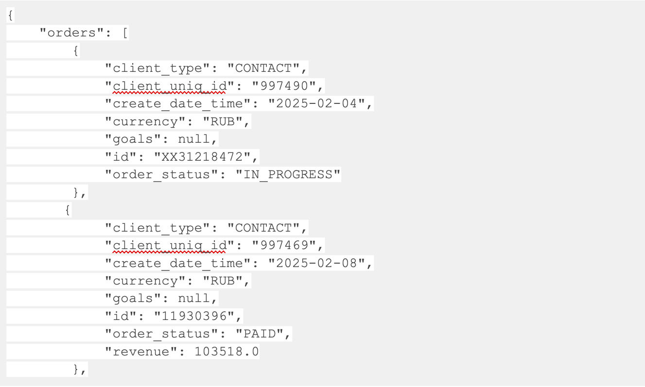 Поскольку есть две сущности — заказы и клиенты, то со стороны CRM данные отправляются в виде двух отдельных JSON-файлов.