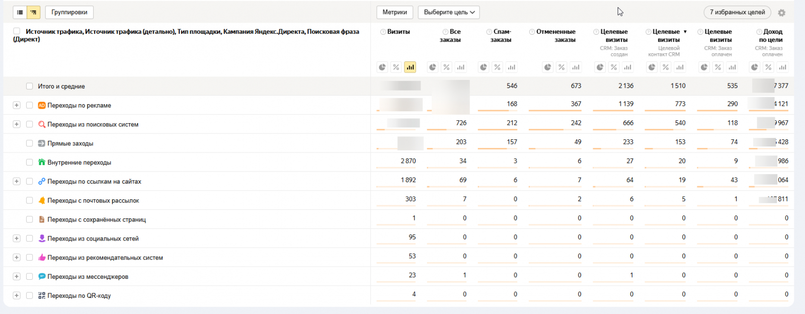 В интерфейсе Яндекс.Метрики для клиента был создан специальный отчет по UTM-меткам со статусами заказов. Соответственно, клиент может видеть актуальную ситуацию по заказам за нужный период.