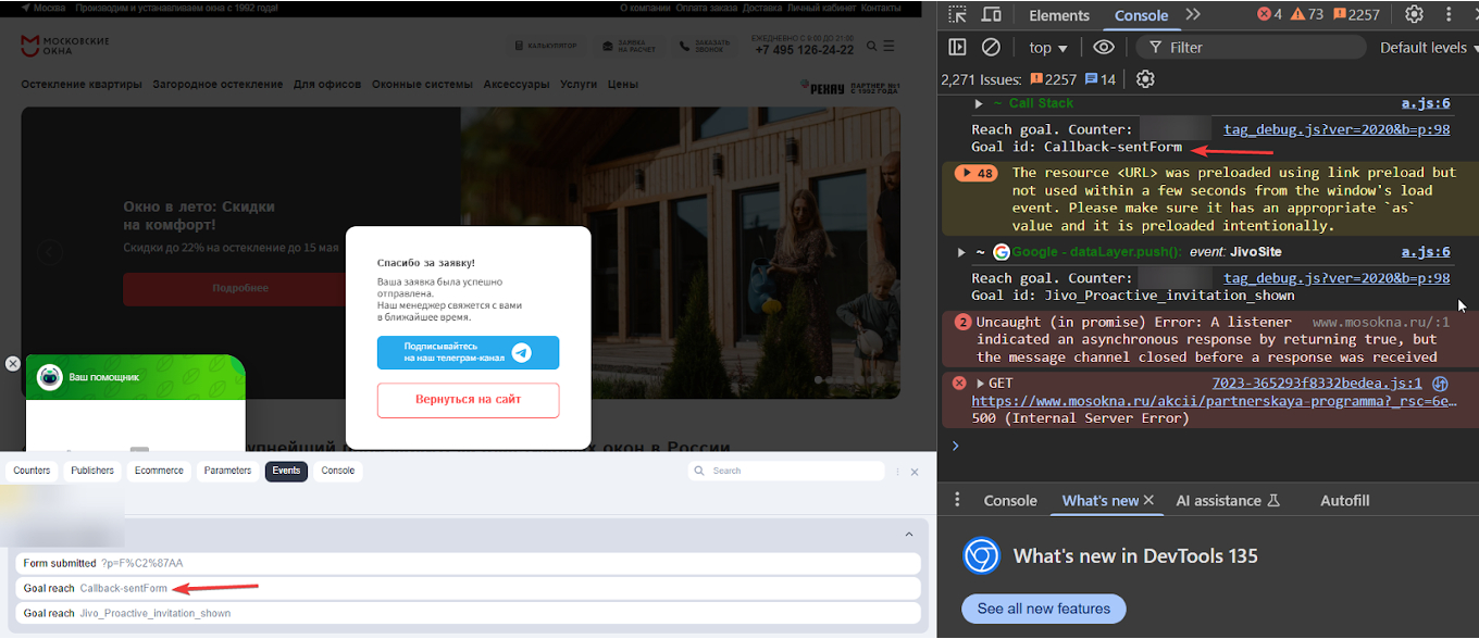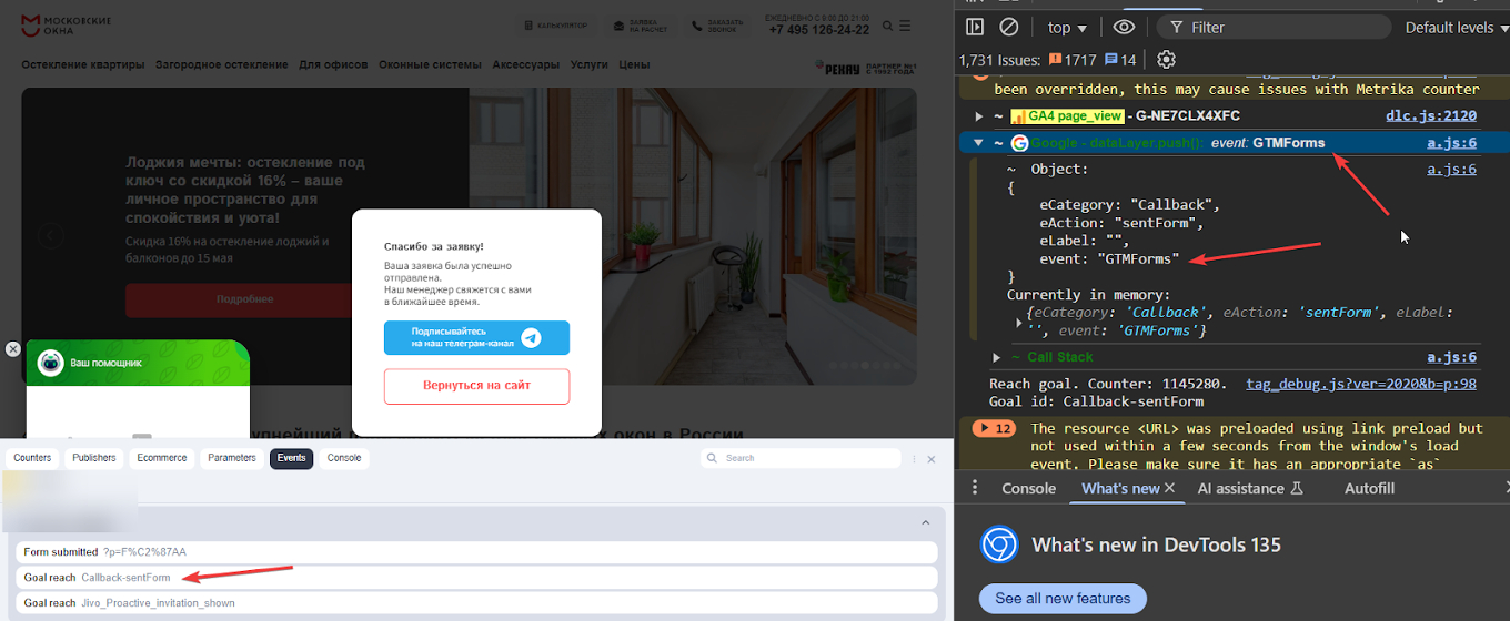 Способ №1 — через Google Tag Manager (проверить можно так же через консоль браузера)