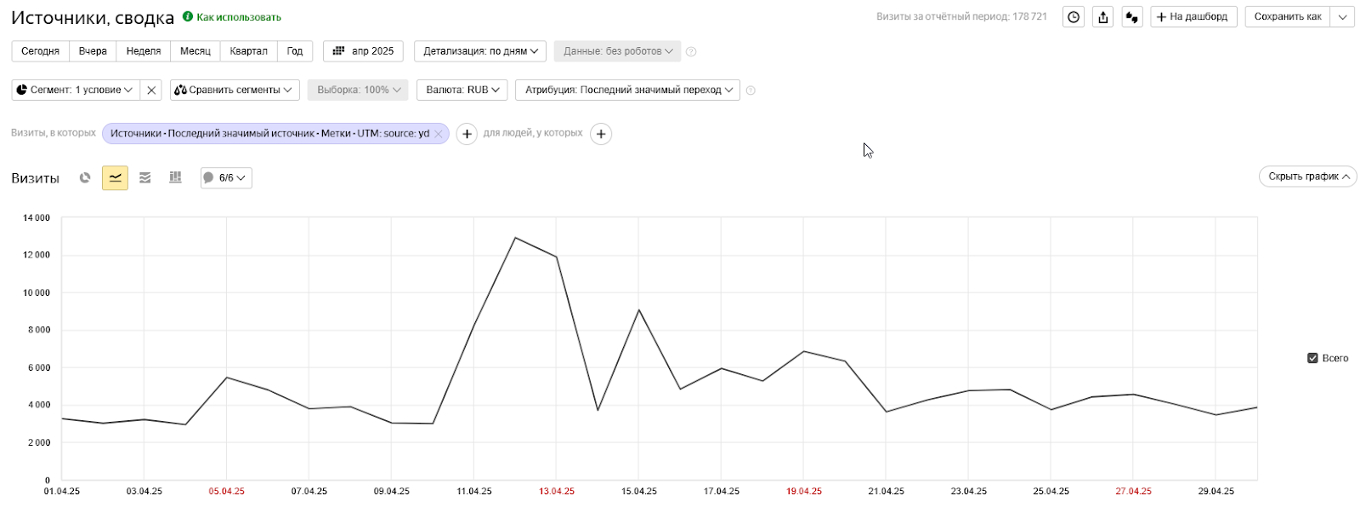 Многие ориентируются на отчет в источнике «Сводка» и не просматривают отчет по UTM-меткам. И вы так делайте!
