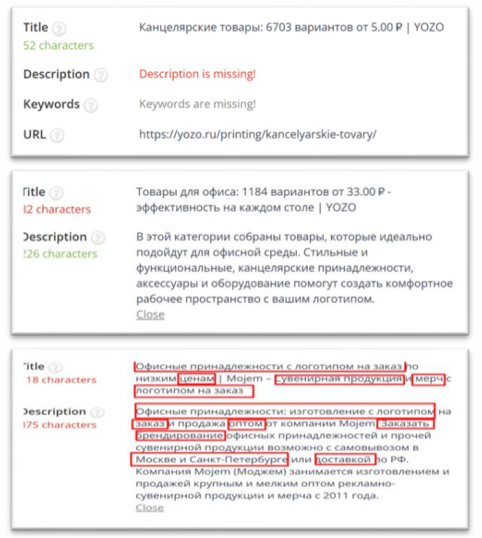 Также изучили содержание страниц конкурентов и составили рекомендации: