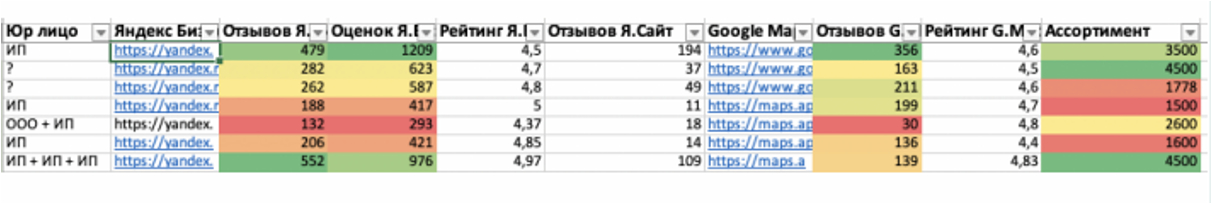 Мы проанализировали показатели качества бизнеса — присутствие на геосервисах, отзывы, оценки, рейтинг, ассортимент, и сравнили их с конкурентами. К чести и доблести «ВОИНа», этой бой они выиграли! Магазин получил высокую оценку качества бизнеса, дополнительные работы не требуются.