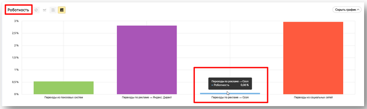 Низкий уровень роботности трафика (менее 0,06%) и практически полное отсутствие фрода: