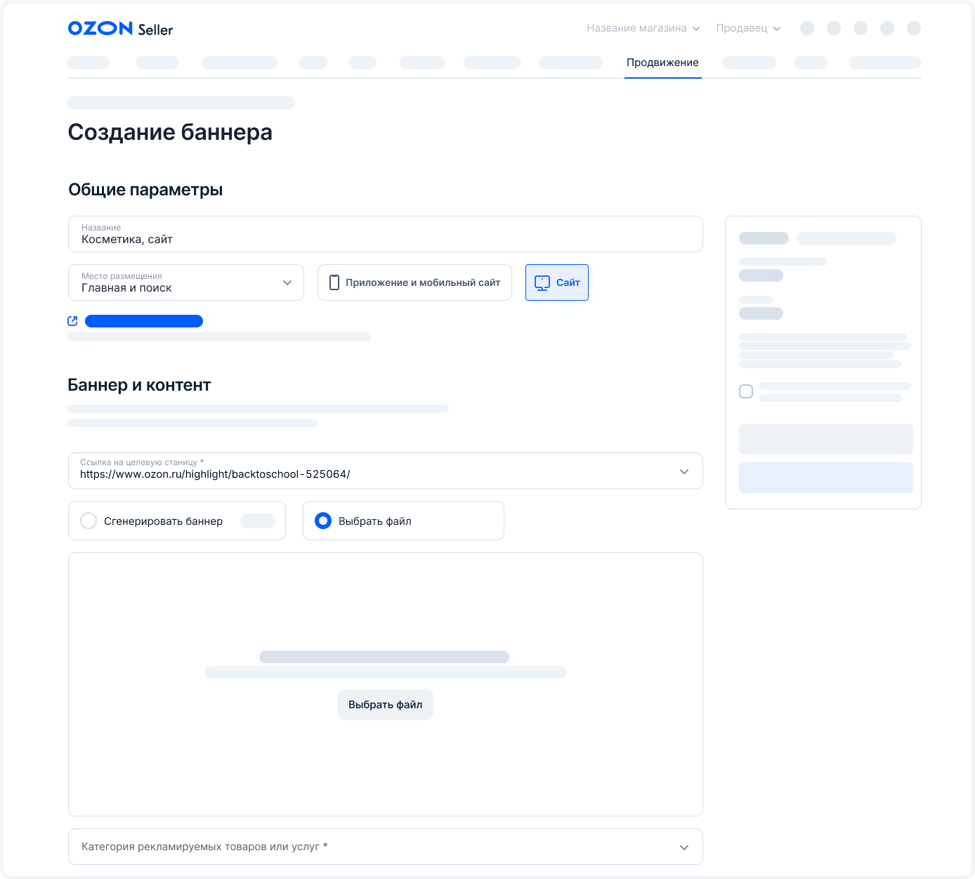 Варианты размещения промобаннера. Источник: https://seller-edu.ozon.ru