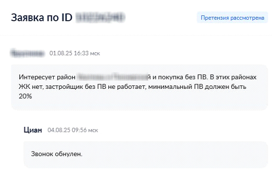 — Сегодня ипотека оформляется только при наличии первоначального взноса. Поэтому, если у человека его нет, оформление покупки невозможно. Для оспаривания такого обращения мы прилагали запись звонка, скрин из CRM и обосновывали свою претензию. И приходилось это делать по каждому подобному случаю!