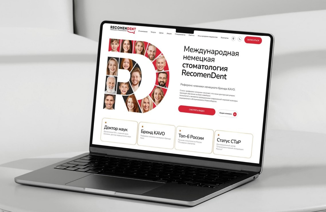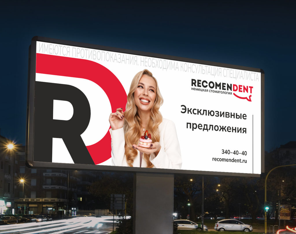 Решение: Новый логотип проектировался с прицелом на диджитал: сайт, социальные сети, цифровые билборды и т.д. Для создания знака «Recomendent» была выбрана монограмма. Она одинаково хорошо работает на любом носителе, легко считывается и уже несколько лет выглядит актуально и свежо.