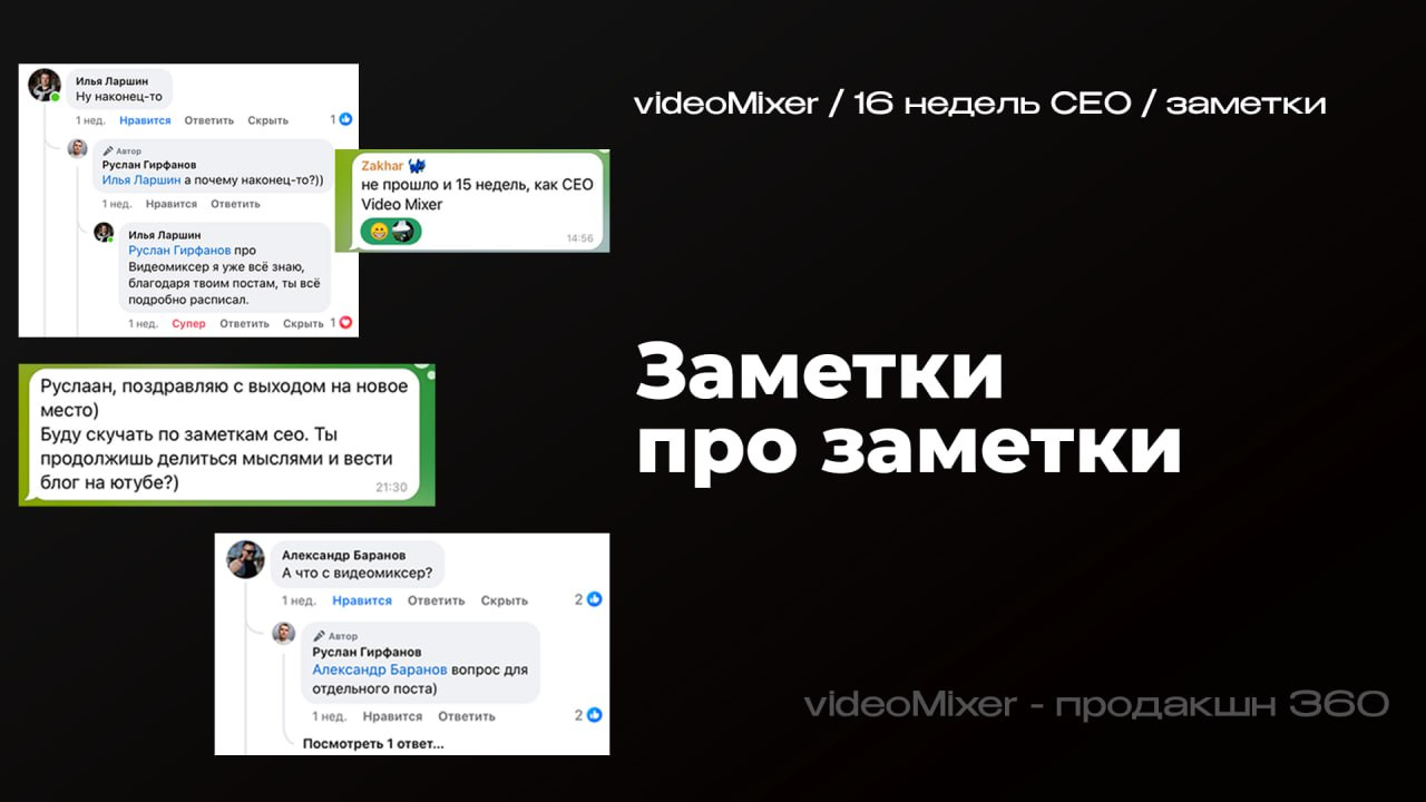 Прикрепил пару скринов с вашими реакциями после моего поста про переход в другое агентство. Было очень неожиданно и приятно узнать о таком трепетном отношении к заметкам))