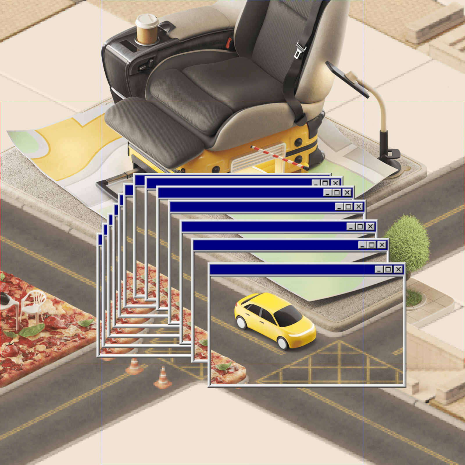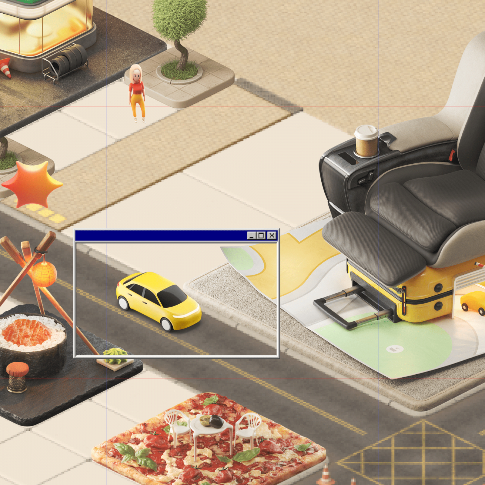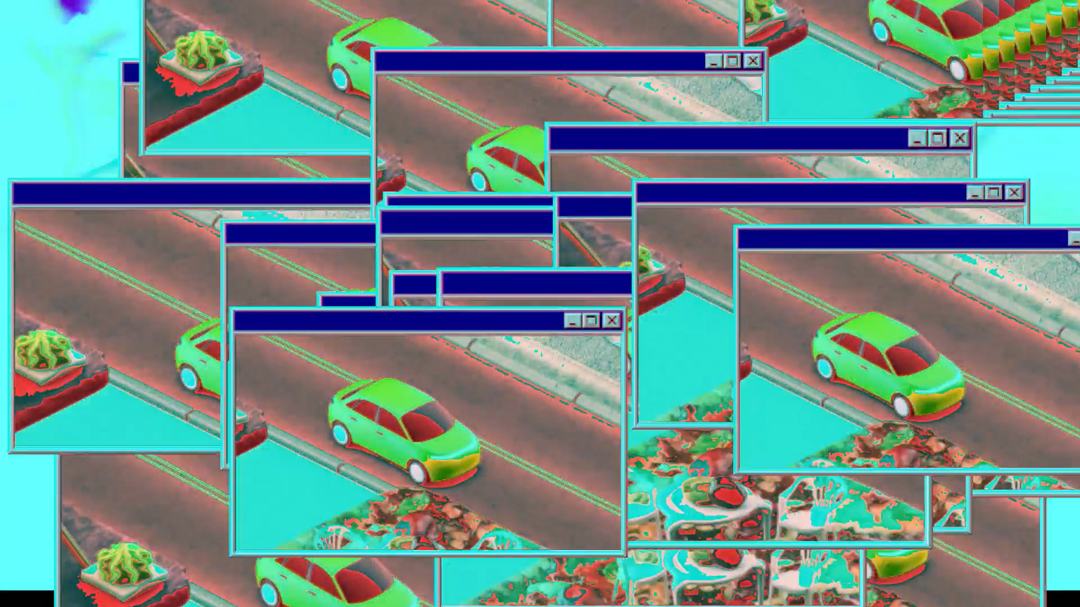 Затем вокруг машины появляется рамка окна windows 98 и как бы изымает машинку из пространства города. Тут снова прикалываемся и обыгрываем строчку “У меня машины ездят за окном”. Как вы успели заметить каламбуры мы любим!
