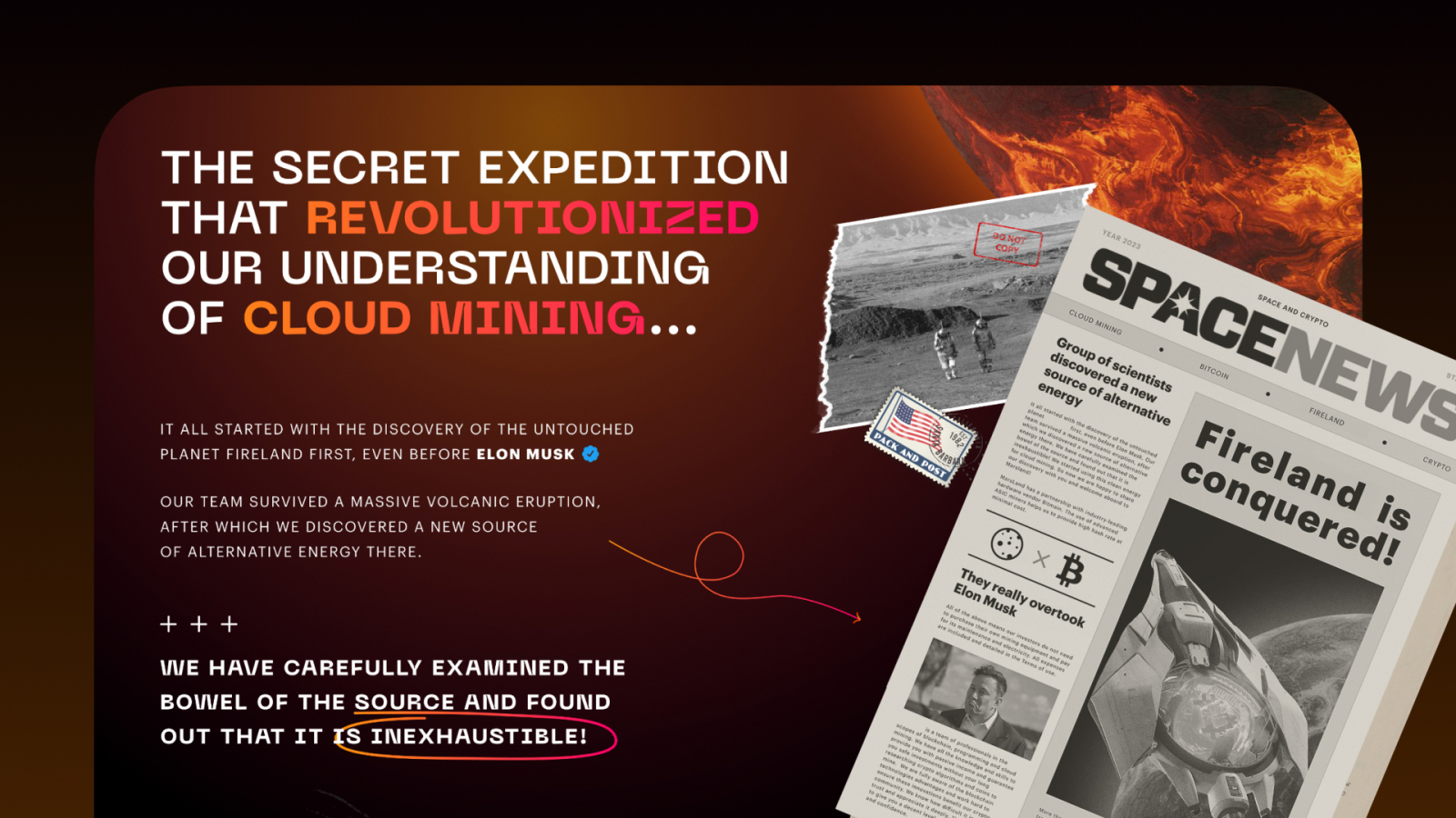 Интересно, что для сторителлинга не всегда нужны слова. Крутой визуал может воздействовать на эмоциональное восприятие даже мощнее. Наш криптопроект Fireland — пример того, как всё повествование переплетено и усилено визуальными приемами. Яркая visual-фича: переход между первыми блоками — эффектный пролет космолета, «разбивающий 4 стену» и манящий скроллить сайт дальше, следуя за световым хвостом корабля. Дополнительно ощущение погружения в виртуальную вселенную подкрепляется аудиальным сопровождением: звуки пролетающего космолета и интерфейса космического корабля, фоновая музыка на формах захвата.