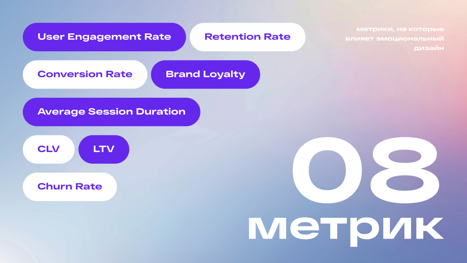 Ниже мы даем ready-to-use список техник эмоционального дизайна, влияющих на такие метрики внутри продукта.