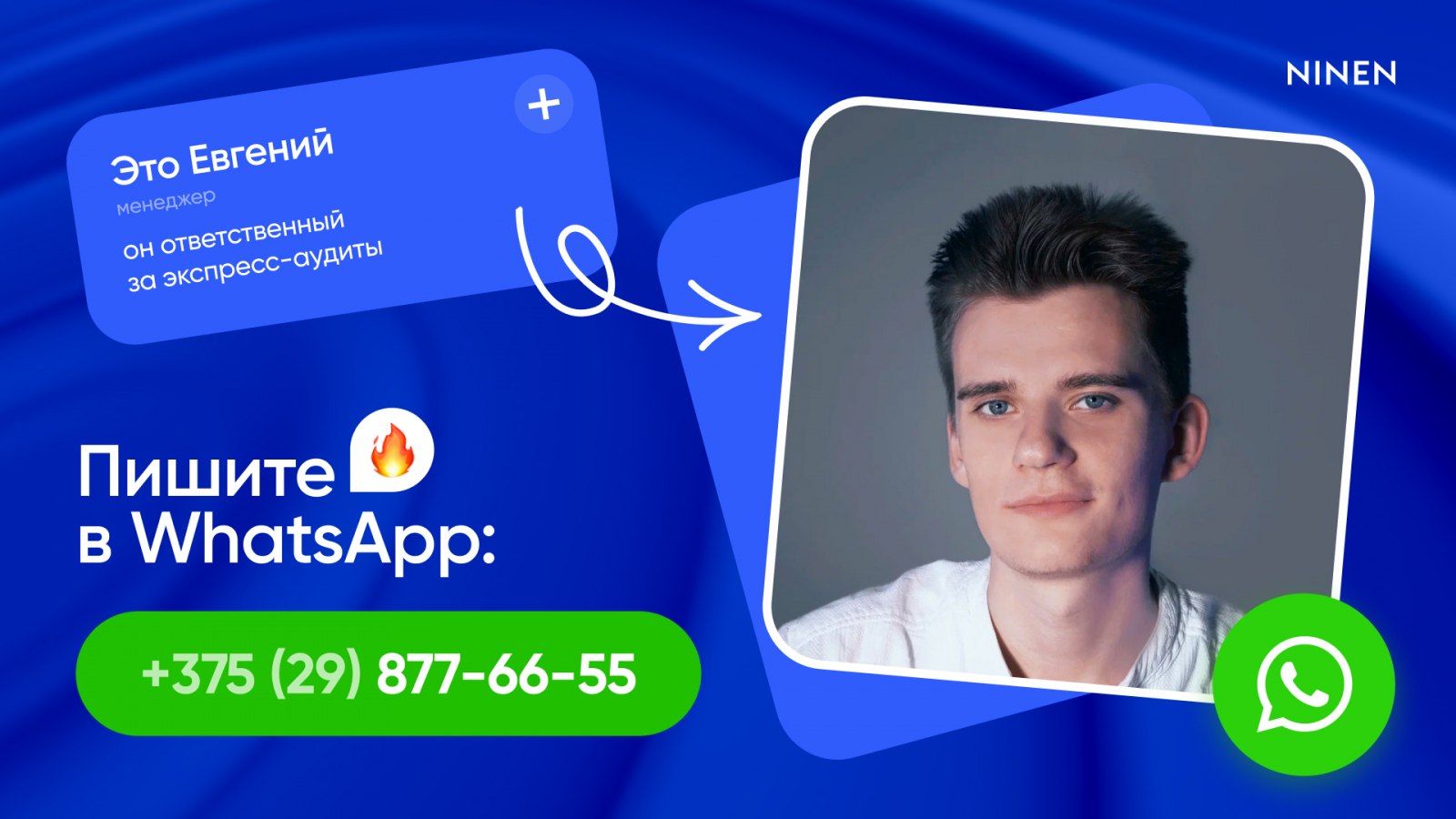 У меня за экспресс-аудиты отвечает вот этот парень — менеджер по работе с клиентами, можете смело ему писать с любым запросом, а он распределит запрос в работу middle+ маркетологам.