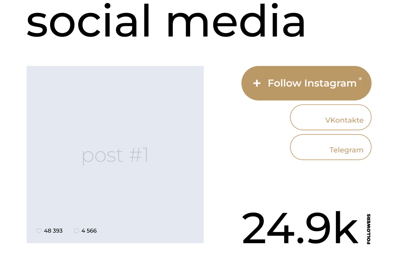 Вдохновение брали не просто из пинтереста, а из конкретного источника, который хорошо работает в модной индустрии: обложки глянцевых журналов и реальные фотографии заказчика. Наш дизайнер опирался на личную коллекцию журналов и разобрал основные приемы: как работает воздух, как человек вписывается в композицию, как крупная типографика не спорит с фото, а усиливает его. Это помогло сразу держать направление журнальной верстки, которое заказчик захотел внедрить еще на этапе прототипов.
