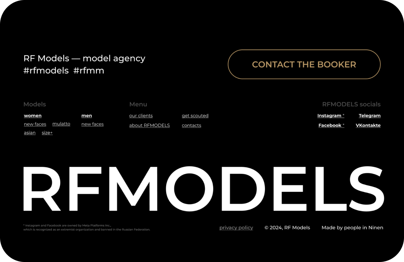 RFMODELS — агентство, которое уже 8 лет представлено на рынке (есть сайт и соцсети), поэтому наша задача была не в масштабировании. Клиент хотел обновиться визуально и сделать сайт более привлекательным, чтобы его было не стыдно открывать на встречах и показах, когда решается вопрос доверия в моменте.