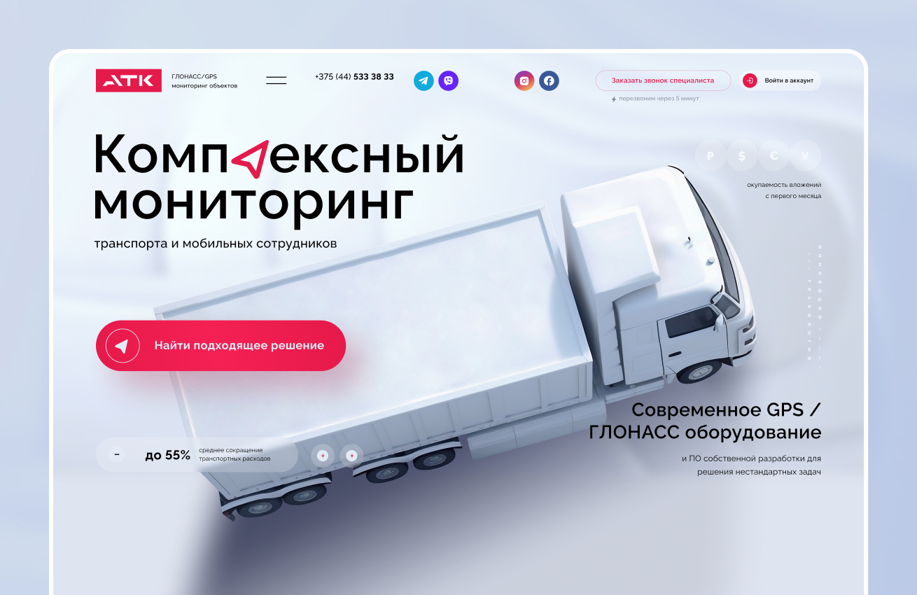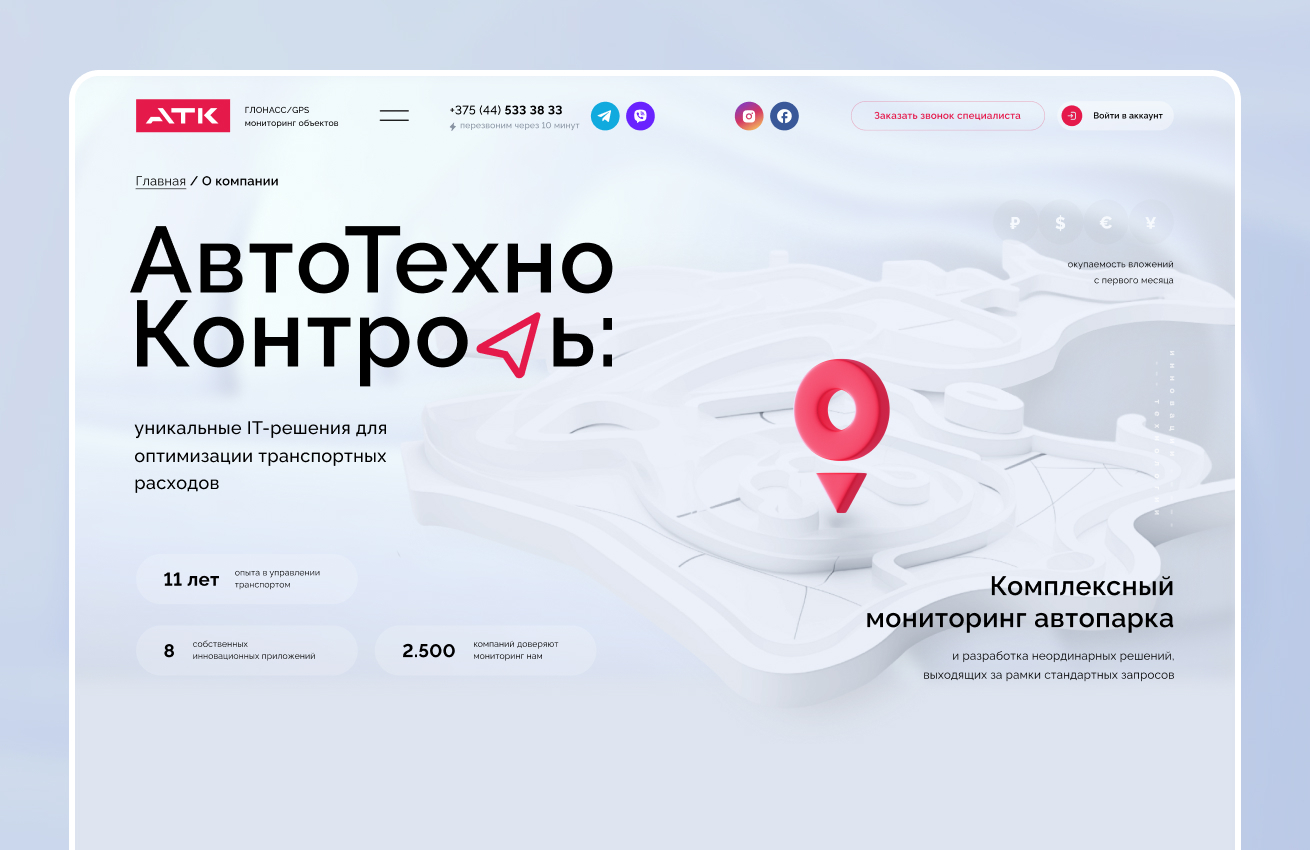Задача проекта оказалась глубже, чем просто редизайн. Нам нужно было избавиться от восприятия сайта как каталога оборудования и сформировать образ АТК как технологического партнера, который продает управляемость автопарка, аналитику данных и измеримый экономический эффект.