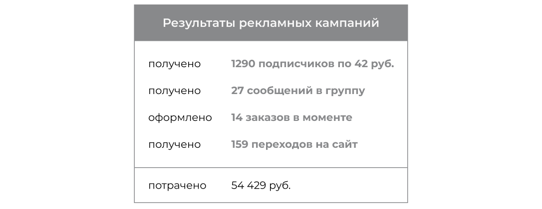 Цели рекламы – переходы и вступления в сообщество, получение заказов на сайте и получение сообщений.