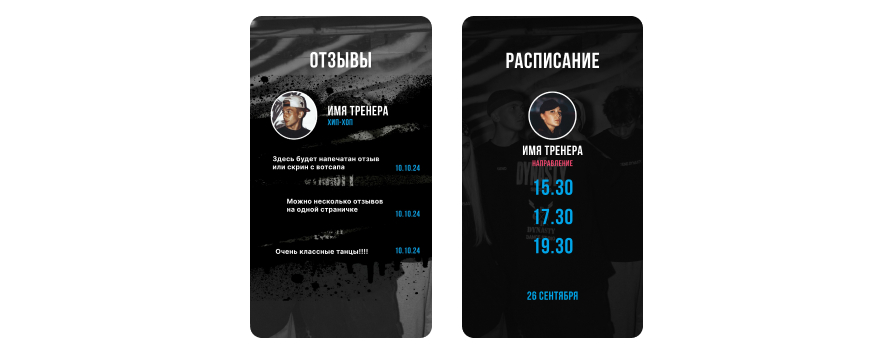 Были разработаны шаблоны для расписания и отзывов с использованием графических элементов.