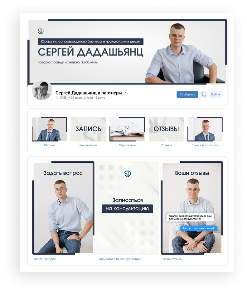 Наша задача — упаковать Сергея как личный бренд и сделать так, чтобы в соцсетях он выглядел так же уверенно, как в жизни.