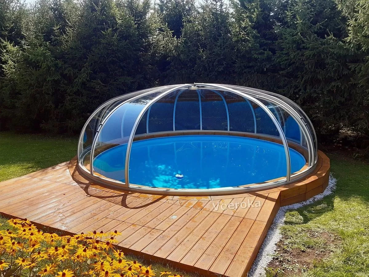 После установки на приусадебном участке бассейна многие сталкиваются с такой проблемой как попадание в воду веток, насекомых, листьев, пыли и прочего мусора. К тому же, купаться под палящим солнцем без тени или под дождем тоже не очень комфортно. Если, конечно, заранее не продумать этот момент. Оптимальное решение, позволяющее защитить резервуар от подобного — установка раздвижного павильона. Такие конструкции имеют свои особенности, преимущества, разновидности.