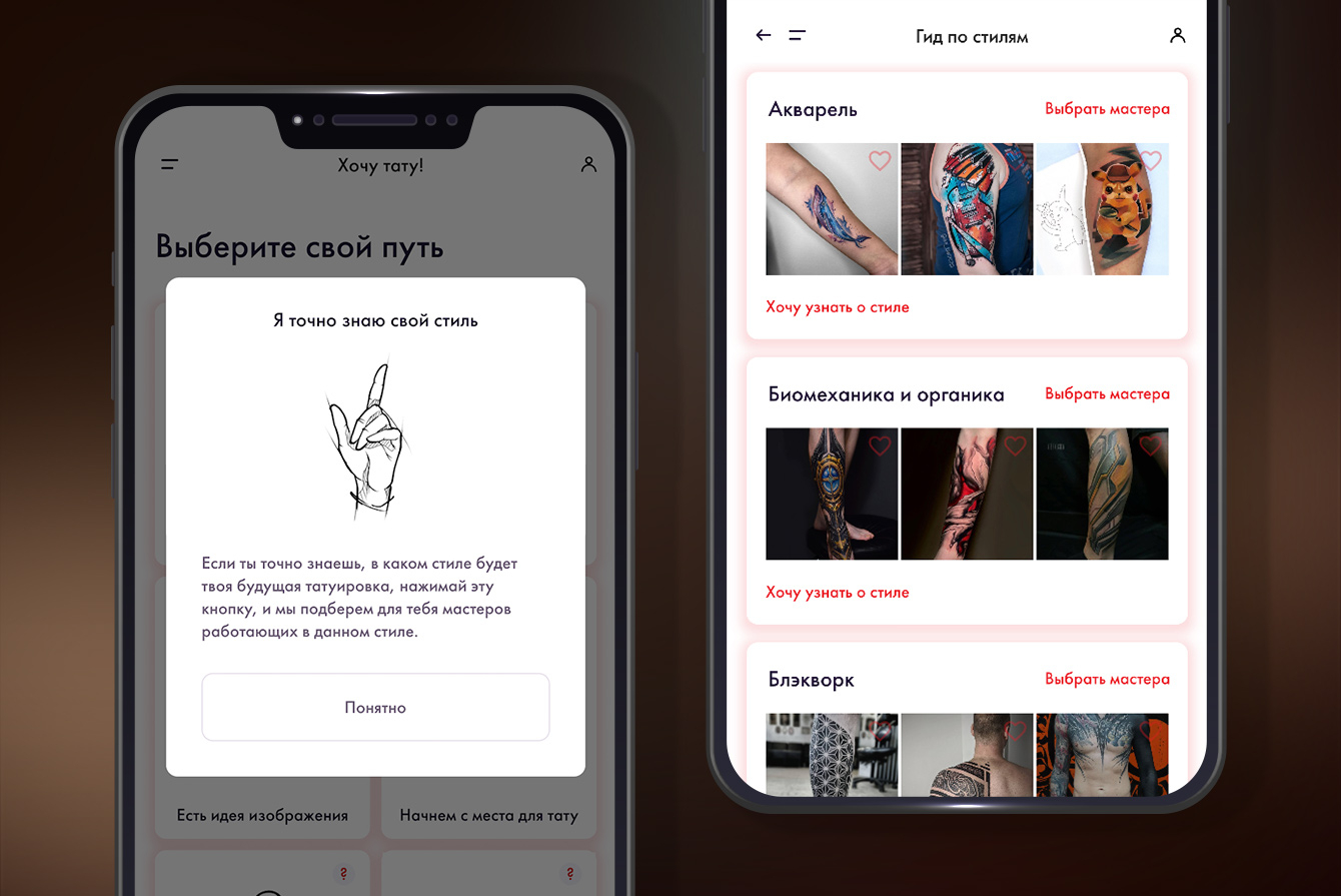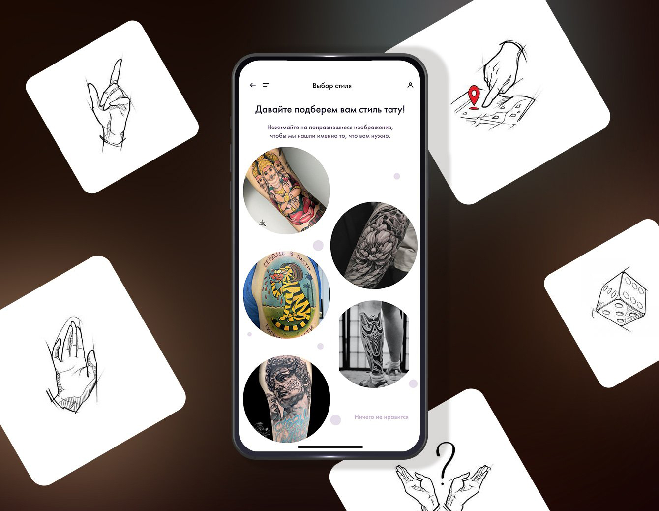 Клиент обратился к нам с идеей мобильного приложения, которое должно было помочь людям, мечтающим сделать татуировку, определиться с подходящим стилем и выбрать идеального для себя тату-мастера.