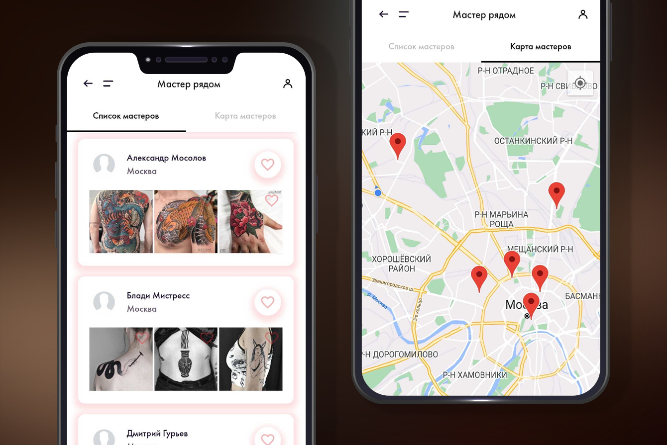 Для реализации главной задачи – помочь тату-мастеру и пользователю найти друг друга – мы сосредоточились на умении приложения точно определять их локации и рекомендовать пользователям именно тех мастеров, до которых будет удобно добраться. На случай, если в выбранной локации пока немного специалистов, система предусмотрительно увеличивает радиус поиска.